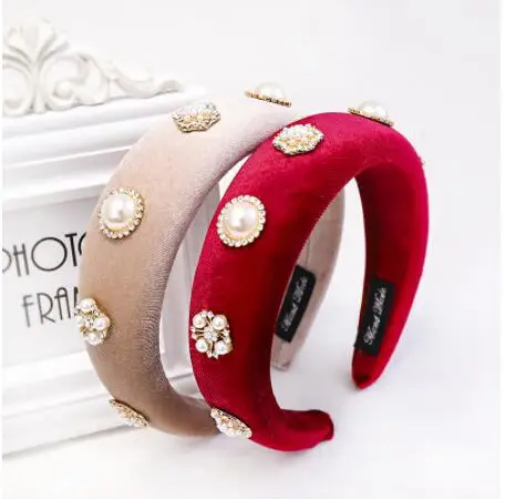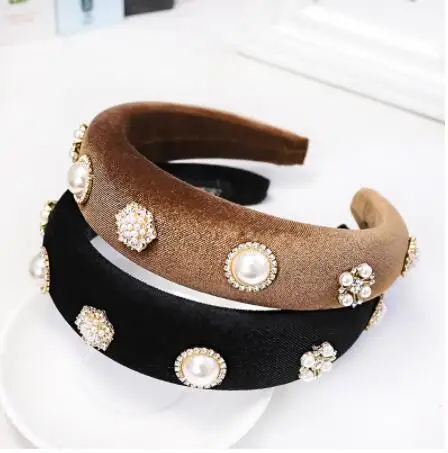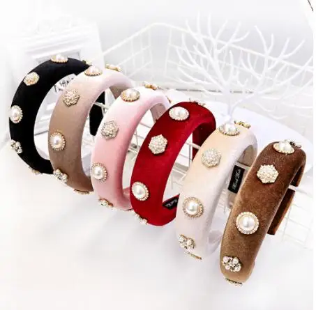 Special Offer 2019 New Arrival Women Fashion Velvet Pearl Rhinestone Hairband Solid Color Crystal Hairband Hair Accessories Discount 0% Today!