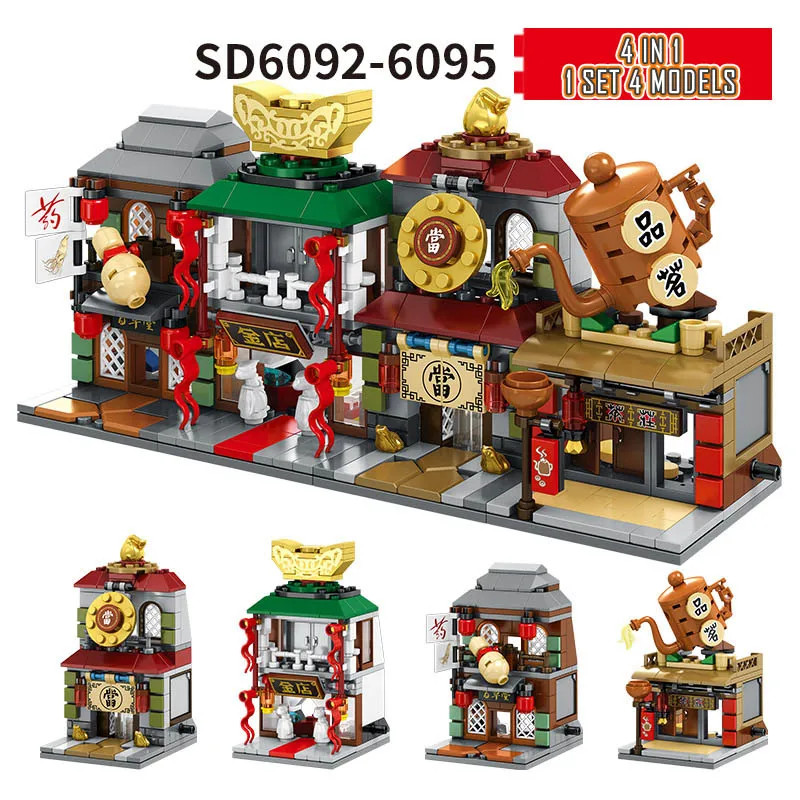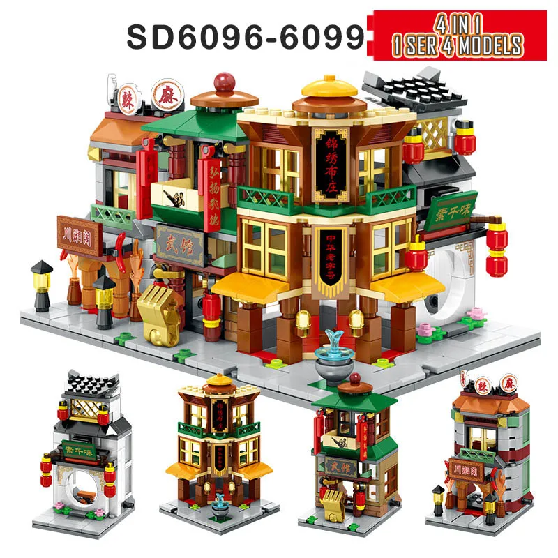 Special Offer 4 In 1 Mini Street Building Blocks City Shop Chinese Architecture Model Series Kids Creativity Toys Compatible Most Brands Block Discount 29% Today!