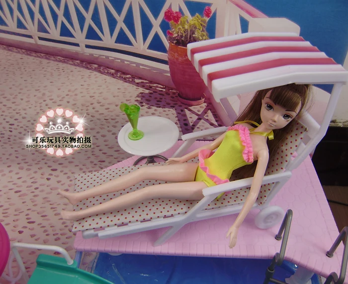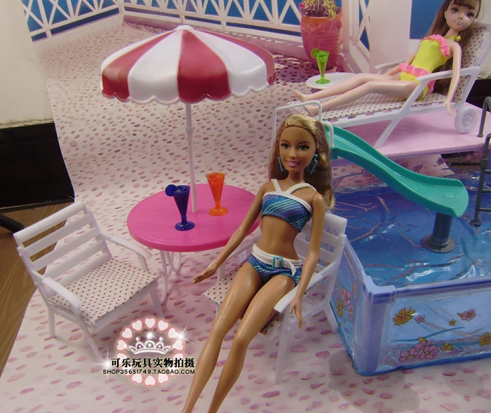 Special Offer Doll accessories For barbie doll toys pool swimming furniture umbrella beach chair can slide for barbie doll pool set Discount 39% Today!
