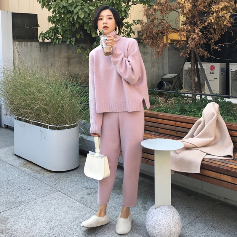 Special Offer Casual Sweater Pants Knitted 2 Pieces Set Turtleneck Pullovers Elastic Waist Pants Women Sweater Sets 2019 Autumn Knitted Set Discount 53% Today!