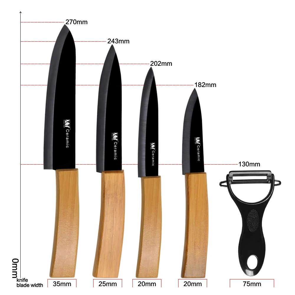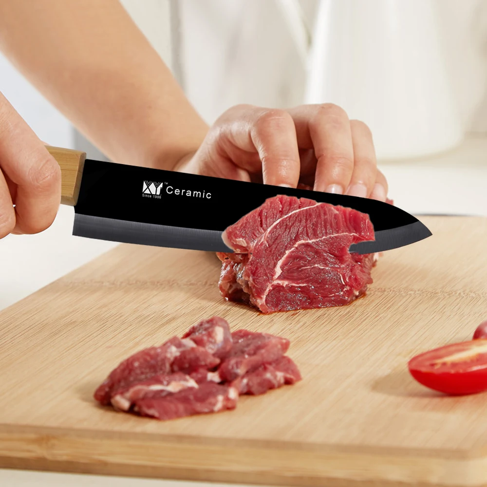 Special Offer XYj 5pcs Ceramic Knife Set Bamboo Handle Black Blade Comfortable Handle Kitchen Knives Free Covers Kitchen Gadgets Accessory Discount 72% Today!