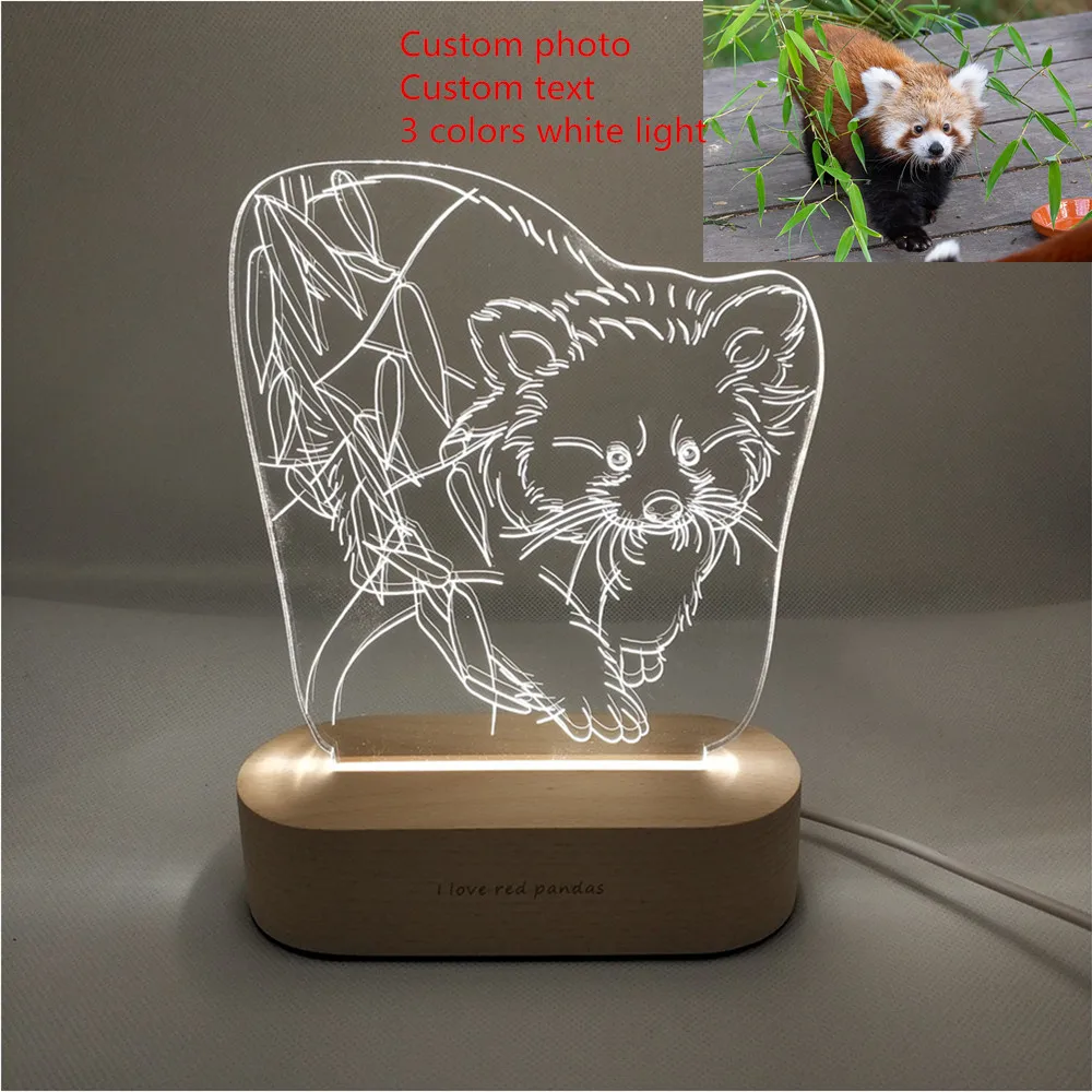 Special Offer Customized Text Photo 3D Print Night Light DIY Desk Lamp Wooden Base Christmas Holiday Gift USB Power Three White Light Discount 25% Today!
