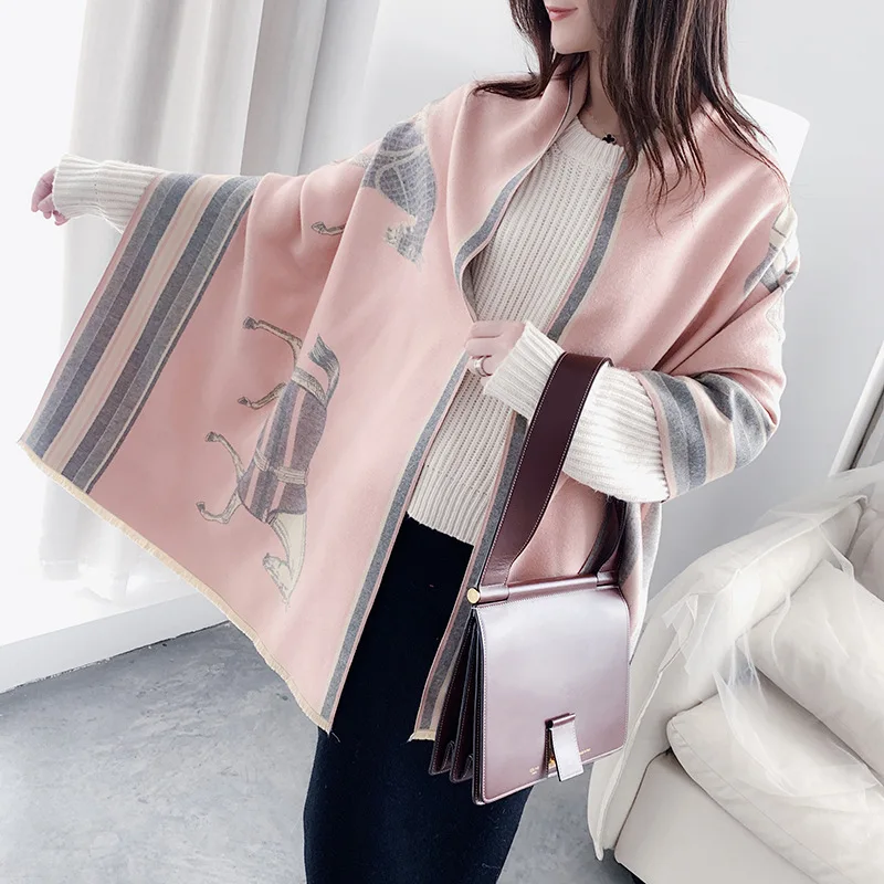 Special Offer Fashion Winter Scarf Women Cashmere Warm Pashmina Foulard Lady Luxury Horse Scarves Thick Soft Bufanda Shawls Wraps 2019 New Discount 30% Today!