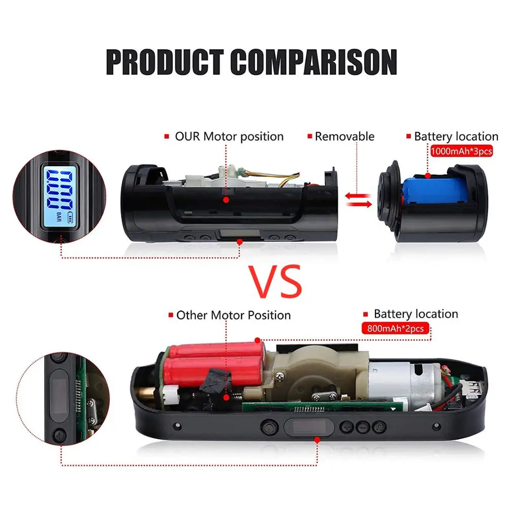 Special Offer Fineed mini air compressor 12V 150 PSI tire inflator for car motor bicycle Tire Pump with tire Gauge LED Light power bank Discount 35% Today!