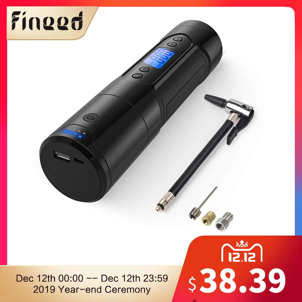 Best . (35% Off) Buy Fineed mini air compressor 12V 150 PSI tire inflator for car motor bicycle Tire Pump with tire Gauge LED Light power bank Price Online.