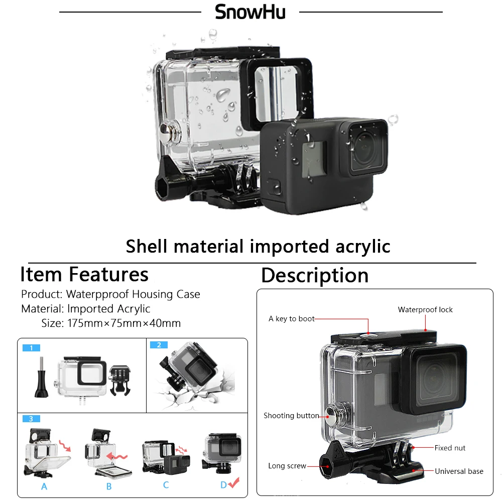 Special Offer SnowHu for Gopro Accessories Set For Gopro hero 8 7 6 5 Waterproof case Protection Frame monopod for Go pro 7 6 gopro 8 GS73 Discount 36% Today!