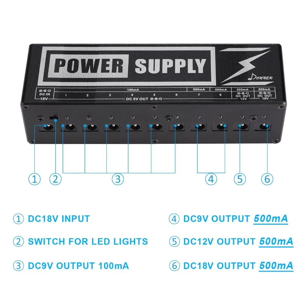 Special Offer Donner DP 2 Guitar Effect Pedals Board Power Supply 10 DC Isolated Outputs For 9V 12V 18V Guitar Accessories Voltage Protection Discount 39% Today!
