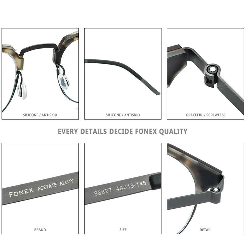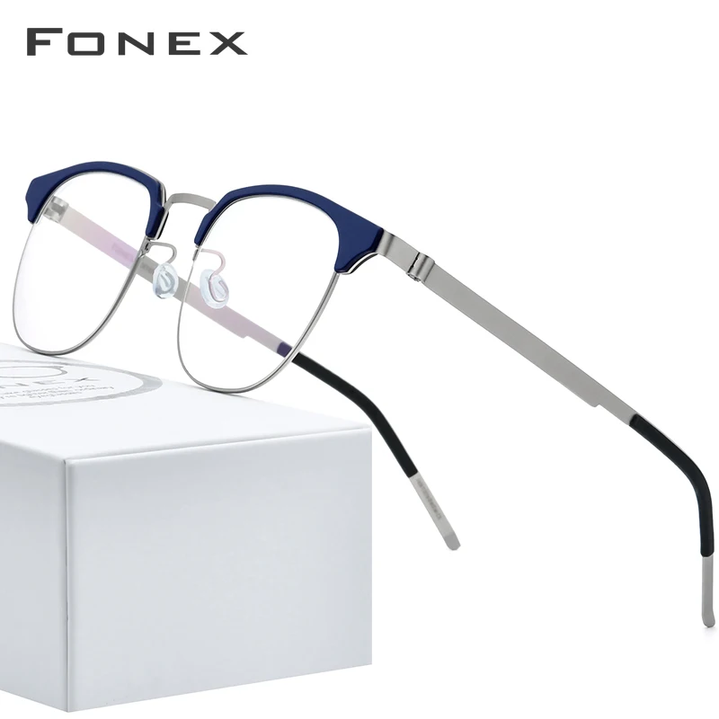 Special Offer FONEX Acetate Alloy Glasses Frame Men Women Vintage Round Myopia Optical Half Prescription Eyeglasses Screwless Eyewear 98627 Discount 57% Today!