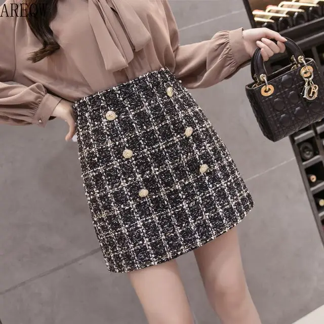 Special Offer Tweed Half length Skirt for Women In Autumn Spring 2019 New Korean White Black Chic Short Skirt with High Waistband and Hip Discount 14% Today!