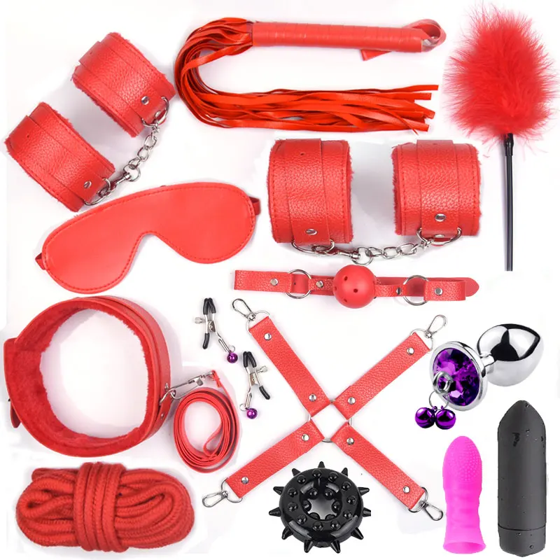 Special Offer 14 PCS Metal Anal Plug Bdsm Bondage Sex Toys for Woman Adult Games Leather Sex Handcuffs Whip Mouth Gag Vibrator For Coup Discount 20% Today!