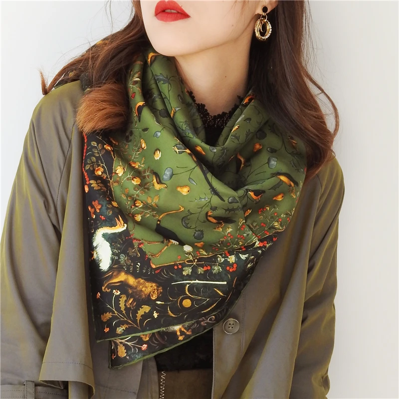 Special Offer Spring Scenery Brids Print 100% Twill Silk Scarf Women Ladies Square Silk Scarves Shawl Wraps OL Clothing Accessory Discount 20% Today!