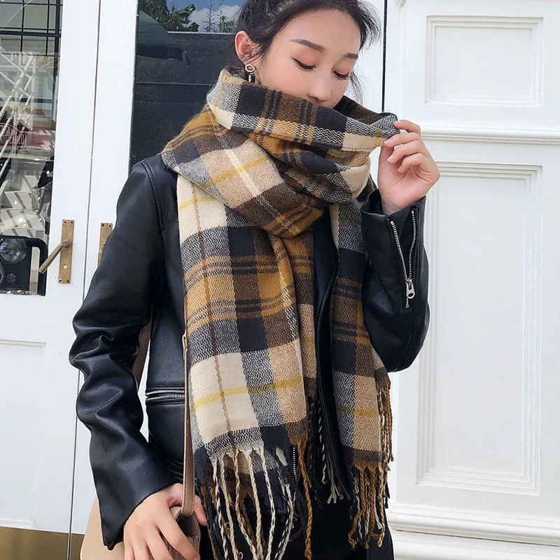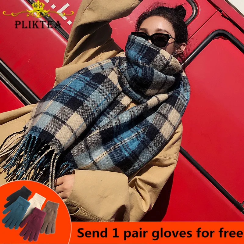 Special Offer PLIKTEA 2019 Faux Cashmere Plaid Scarf for Women Wool Pashmina Winter Warm Shawl Female Plaid Poncho Ladies Thick Tassel Scarves Discount 25% Today!