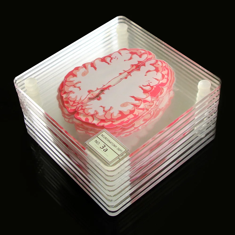 Special Offer Brain Specimen Coasters Set 3D Organ Brain Artwork Brain Slices Square Acrylic Glass Drinks Table Coaster Drunk Scientists Gift Discount 29% Today!