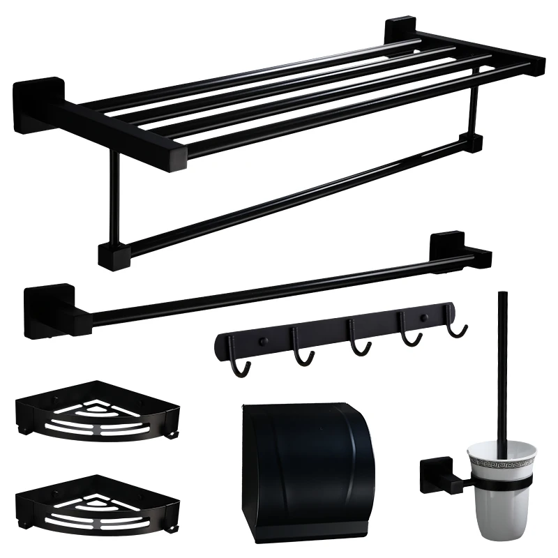 Special Offer Bathroom hardware pendant set black towel ring bathroom stainless steel antique towel rack hair dry holder bathroom accessories Discount 30% Today!