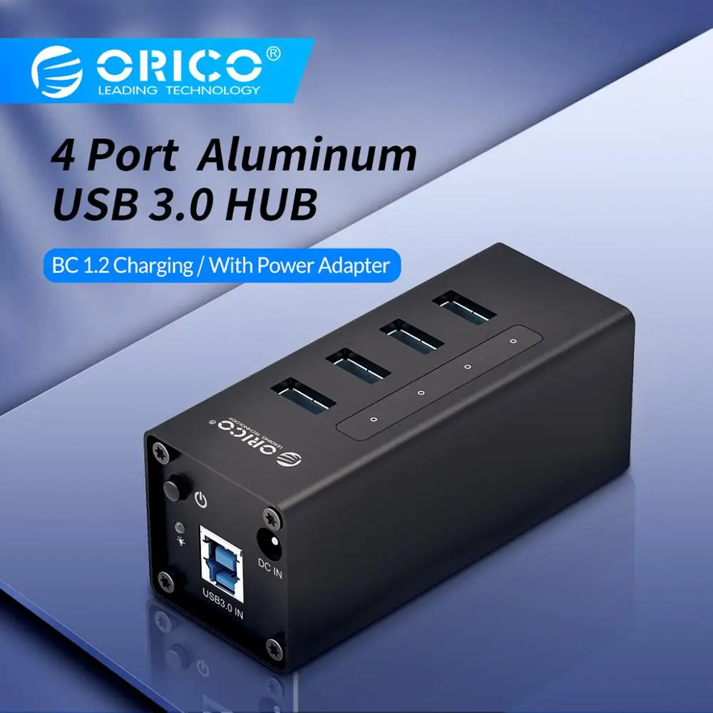 Best . (44% Off) Buy ORICO USB HUB Support BC1.2 Charging Aluminum 4 Port USB3.0 Splitter with 12V2A Power Adapter for MacBook Laptop PC Accessories Price Online.