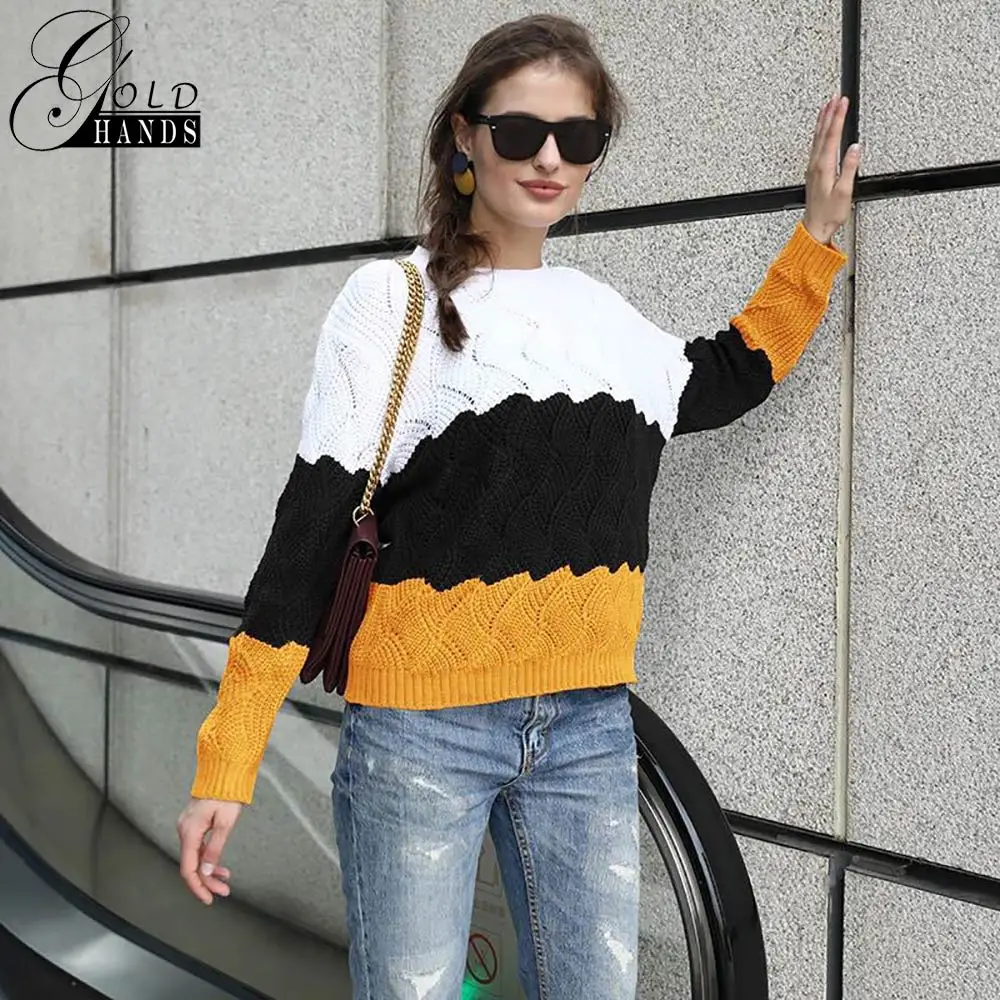 Special Offer Gold Hands New Women Vintage Splice Autumn Ladies Pullover Jumper Winter Long Sleeve Crewneck Knitted Pullover Sweater Free Ship Discount 49% Today!