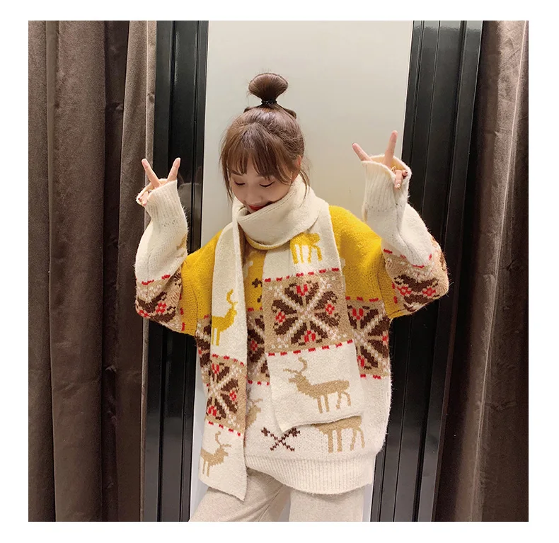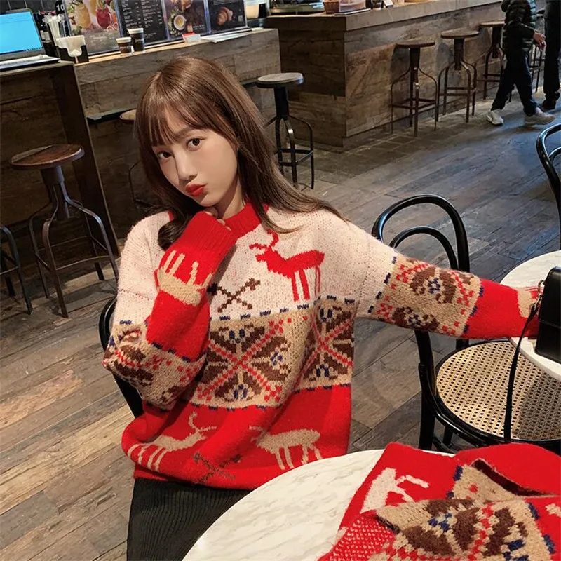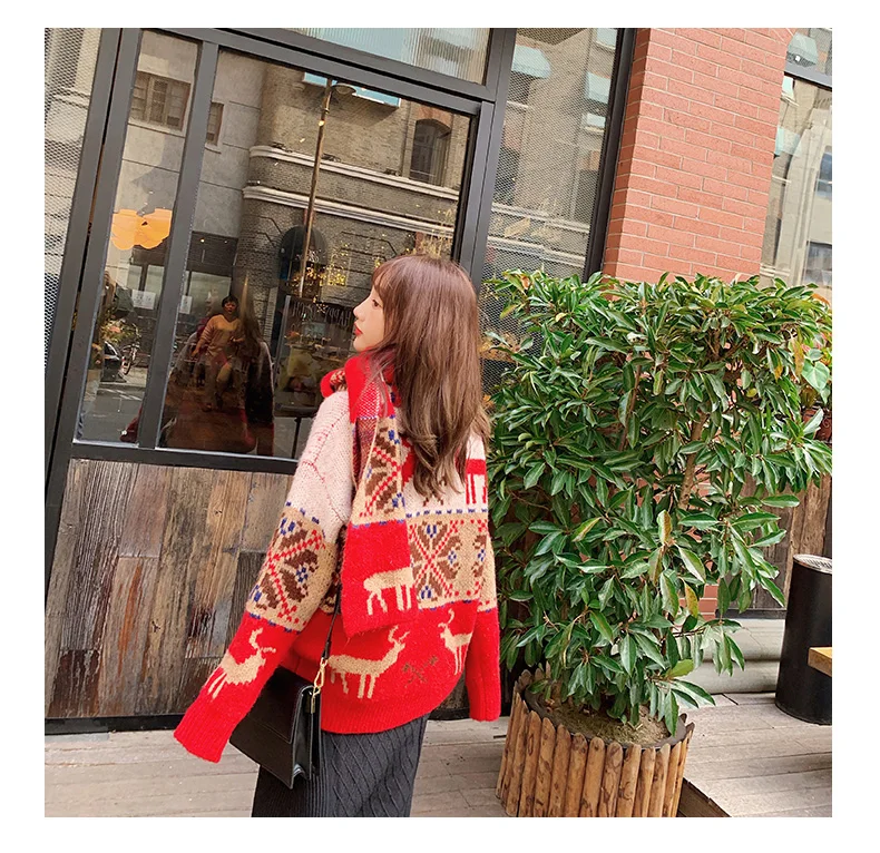 Special Offer Christmas New Year Retro Red Sweater Women s Head Thicken 2019 Autumn and Winter New Loose Thick Wool Jacket Top Discount 50% Today!