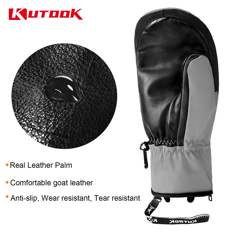 Special Offer KUTOOK Thermal Warm Ski Gloves Winter Goat Leather Snowboard Snowmobile Mittens Waterproof Protective Snow Accessories Men Women Discount 50% Today!