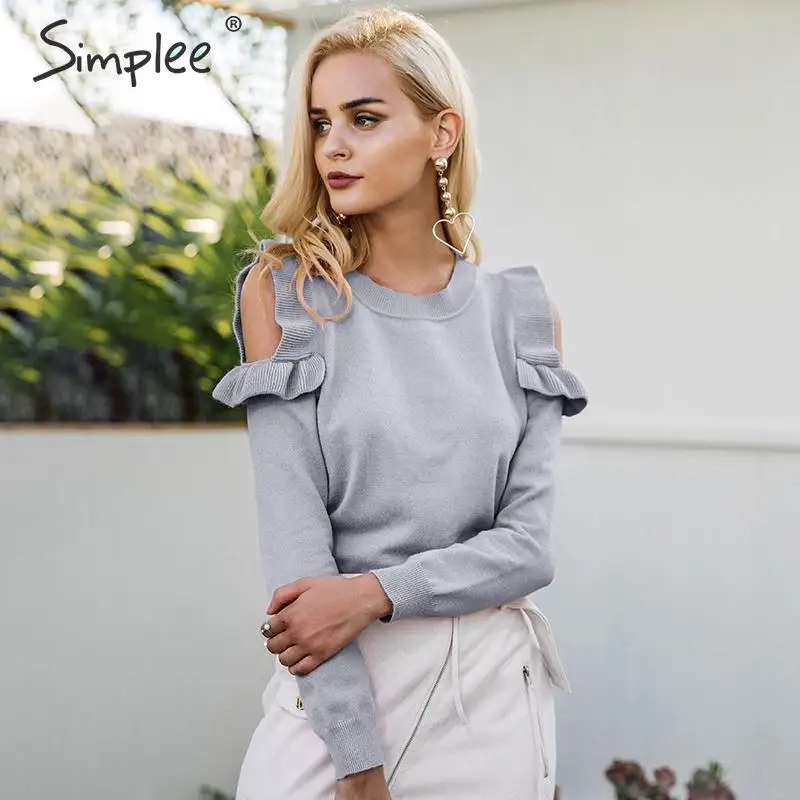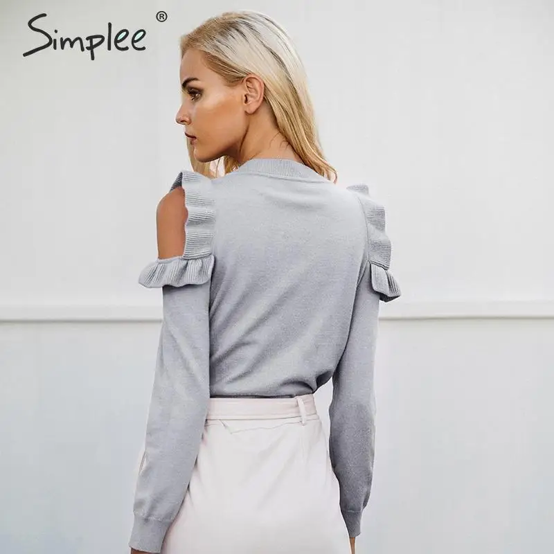 Special Offer Simplee Elegant cold shoulder knitted sweater women jumper Casual long sleeve sweater female Autumn winter ladies pullover 2018 Discount 50% Today!