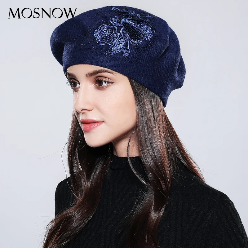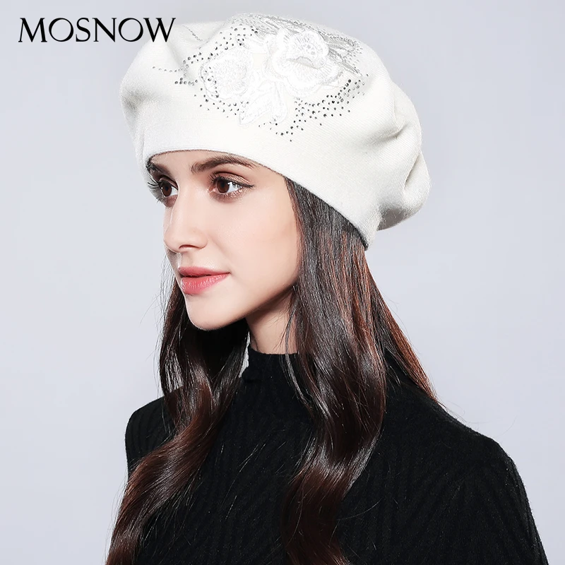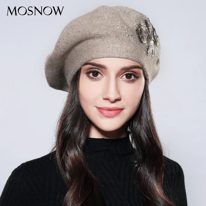 Special Offer Women Beret Elegant Flower Rhinestones 2019 New Autumn Winter Rabbit Wool High Quality Knitted Female Hats Caps #MZ740 Discount 52% Today!
