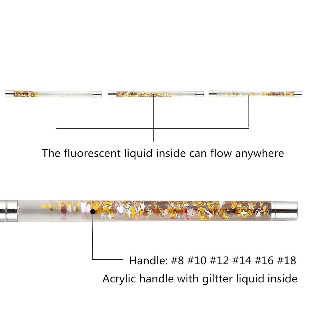 Special Offer Newest 1pc Kolinsky Sable Acrylic Nail Brush with Liquid Flow Glitter Nail Art Brush for Nail Art Tools 8# 10# 12# 14# 16# Discount 15% Today!