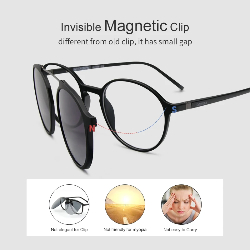 Special Offer Bauhaus Brand Classic Clip On Sunglasses Men Women Magnet Eyewear Glasses Frames ultem Optical Glasses Frame Discount 39% Today!