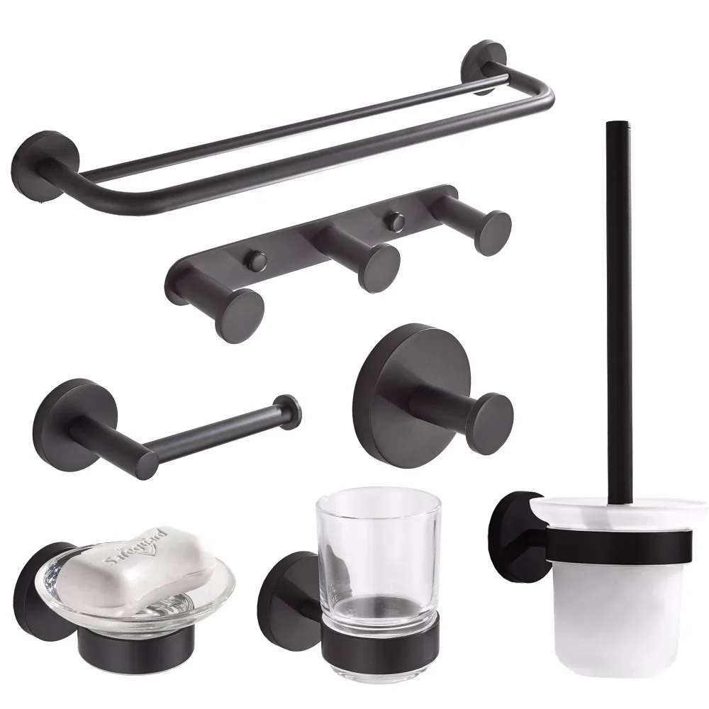 Best . (49% Off) Buy SUS304 Stainless Steel Bathroom Hardware Set Black Matte Paper Holder Robe Hook Toothbrush Holder Towel Bar Bathroom Accessories Price Online.