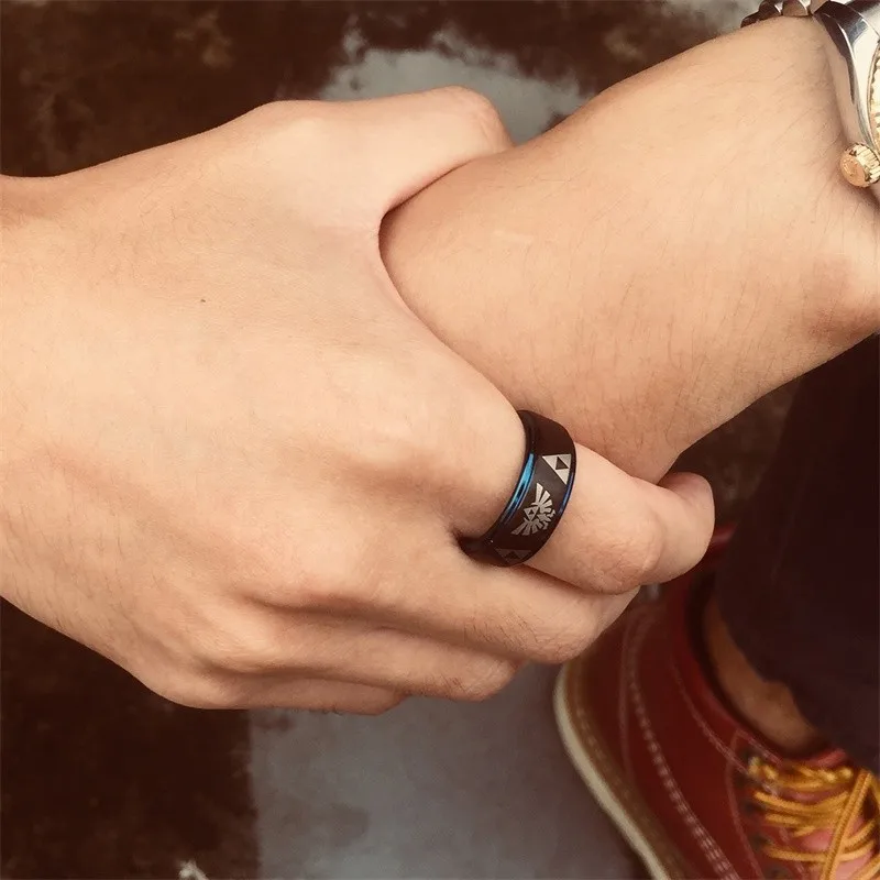 Best . (50% Off) Buy Legend Of Zelda Tungsten Dome Men s Ring Wedding Brands Engagement Male Boy Anillos Anel Accessories Triforce Jewelry Cheap Online.