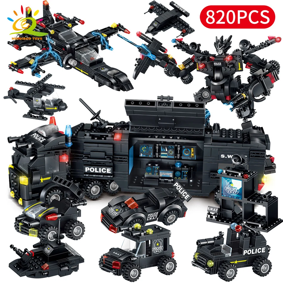 Best . (55% Off) Buy 820PCS SWAT Police Team Building Blocks legoing City Command truck Car Helicopter Mech weapon soldier Model Bricks Children Toys Cheap Online.