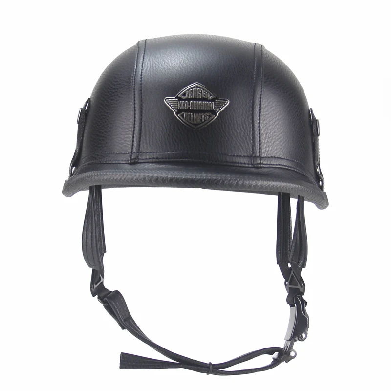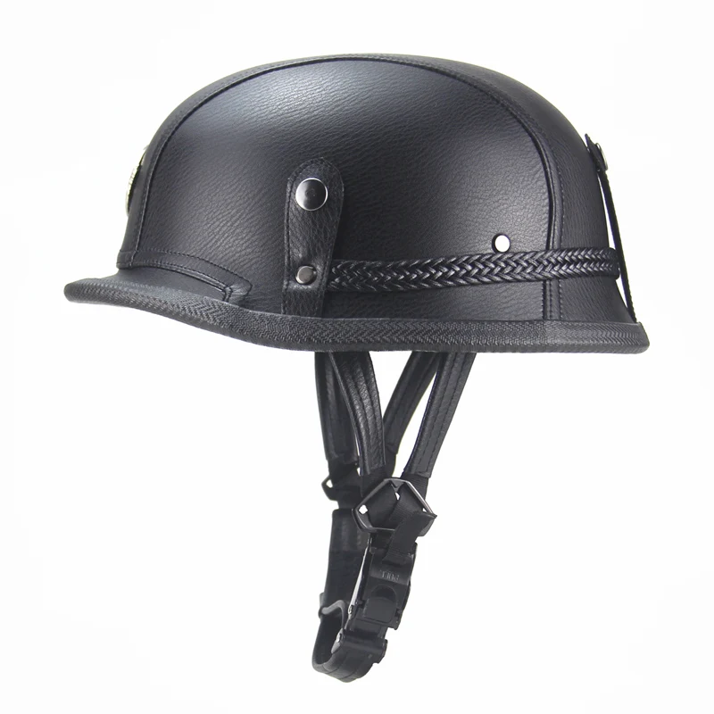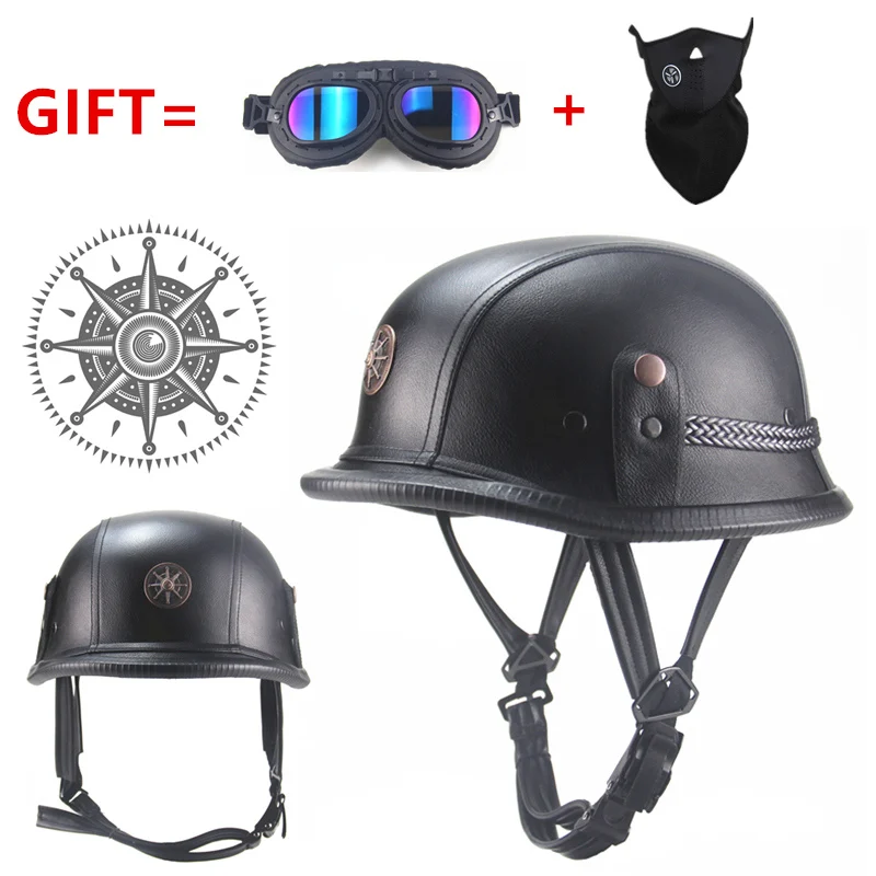 Special Offer FREE SHIPPING Black Adult Open Face Half Leather Helmet Moto Motorcycle Helmet vintage Motorcycle Motorbike Discount 0% Today!
