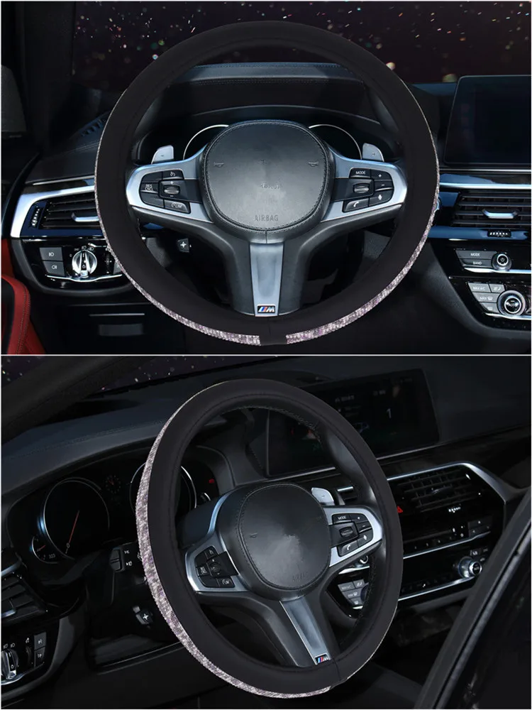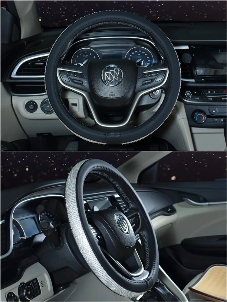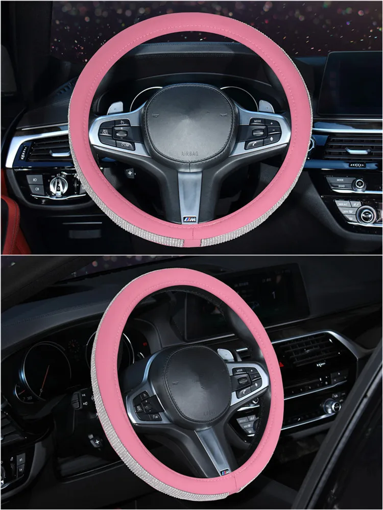 Special Offer 37 38 cm Luxury Crystal Car Steering Wheel Covers Diamond PU Leather Cover Auto Interior Accessories For Women Lady Discount 20% Today!