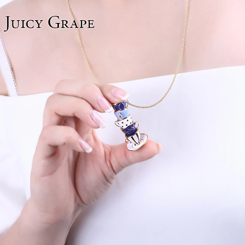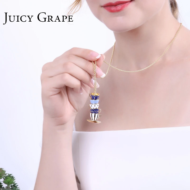 Special Offer Juicy Grape 2019 New Hand Made Sweater Chain Clothing Accessories Long Necklace Enamel Jewelry Tea Cup Necklace Pendant Woman Discount 35% Today!
