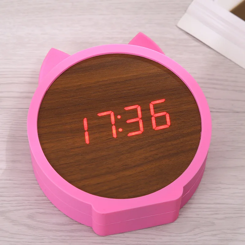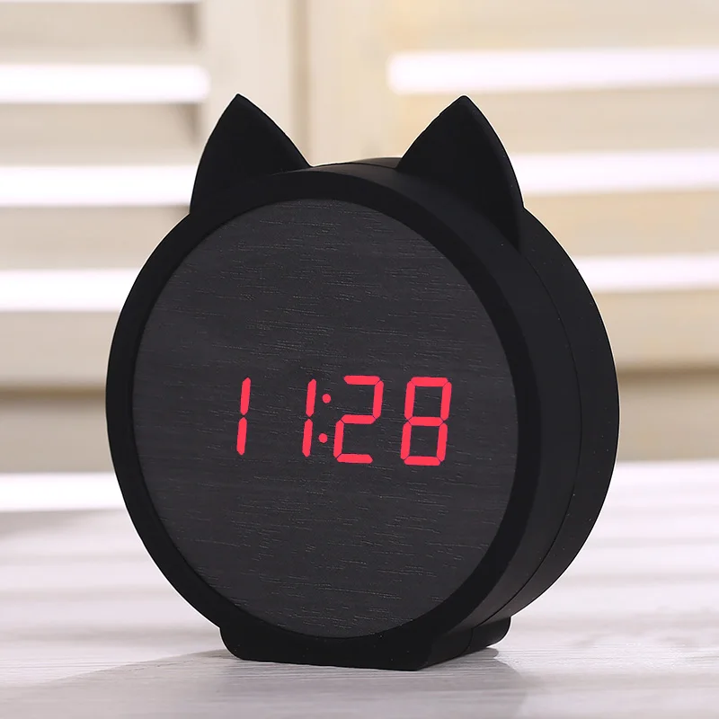 Best . (38% Off) Buy LED Wooden Alarm Clocks Kid s clock Cute Cat Silicone Electronic Wooden table clock Cartoon Calendar Perfection Voice Control Price Online.