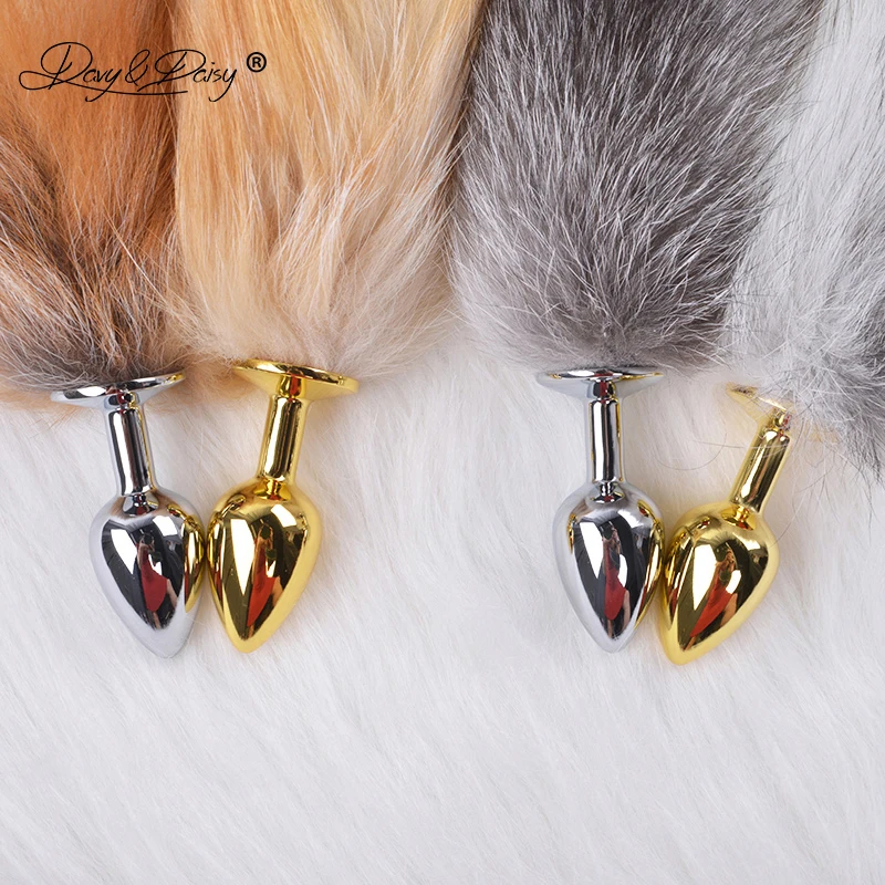 Best . (40% Off) Buy DAVYDAISY Silvery Golden Metal Anal Plug Real Fox Tail Butt Plug Stainless Steel Women Adult Sex Accessories for Couples AC105 Cheap Online.
