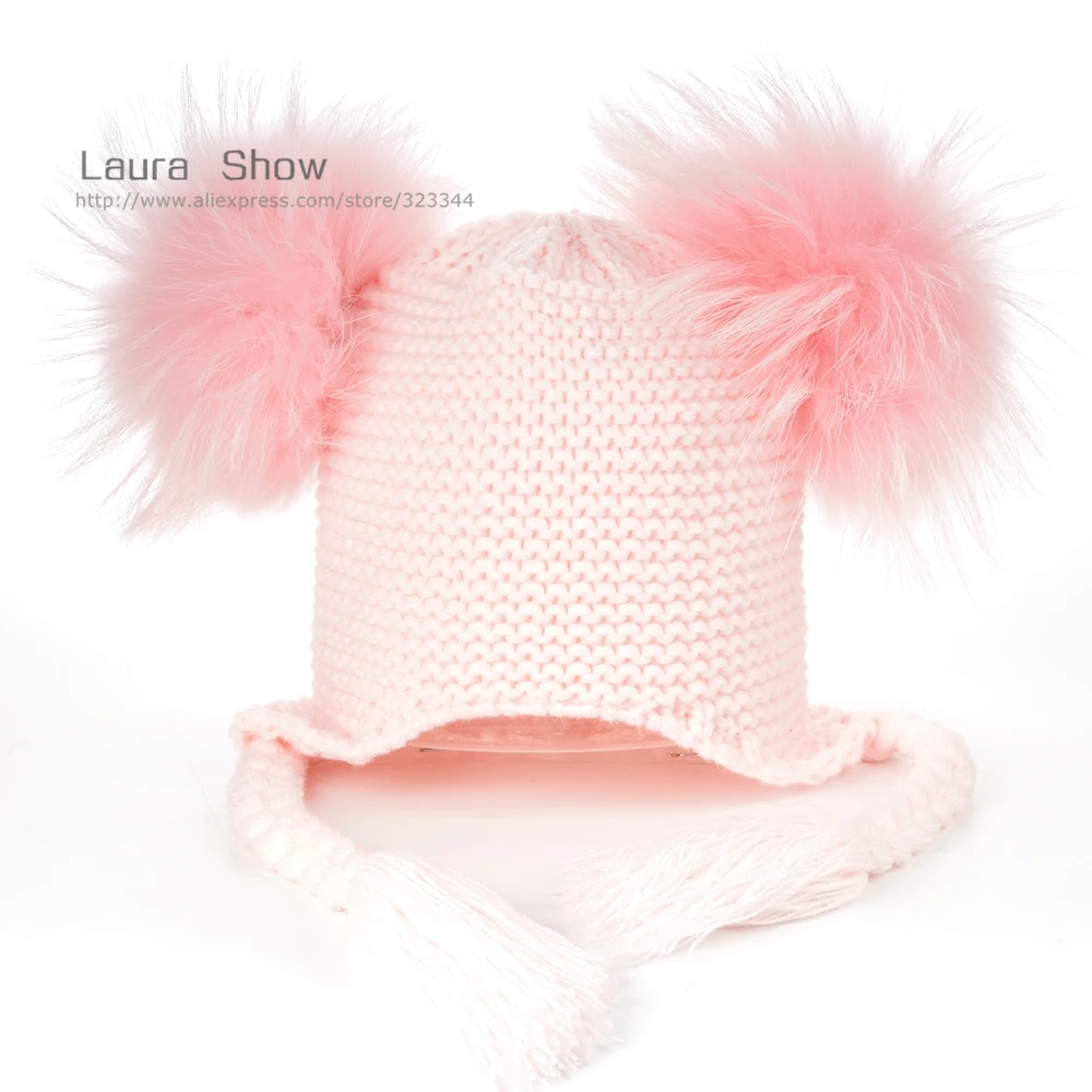 Best . (46% Off) Buy LAURASHOW New Autumn Winter Baby Beanie With Lining 16 CM Real Fur Pompoms Warm Sleep Wool Cap Kids Clothing Accessories Hat Price Online.