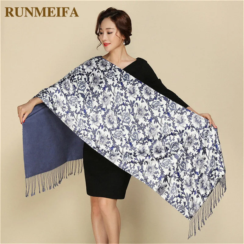Best . (46% Off) Buy Luxury Winter Warm Flower Print Silk Scarves Double Sides Cashmere Wool Pashmina Tippet Shawls and Wraps Elegant Female Foulard Price Online.