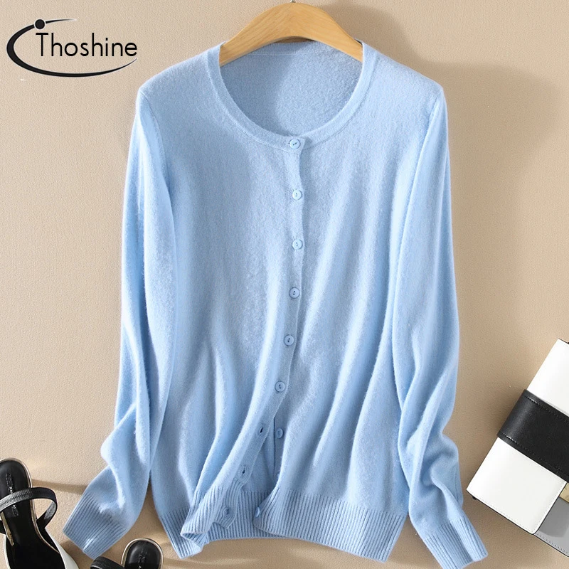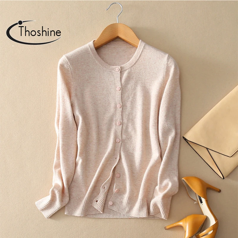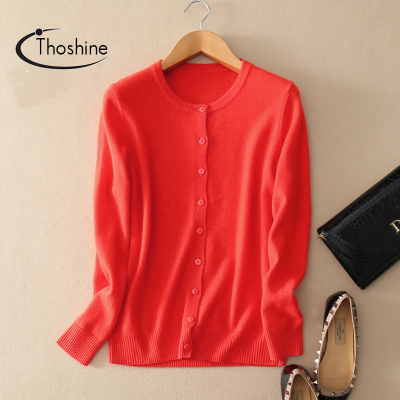 Special Offer Thoshine Brand Autumn Style Women Knitted Cashmere Sweaters Round Neck Female Thin Cardigan Office Lady Jumper Outerwear Coats Discount 20% Today!