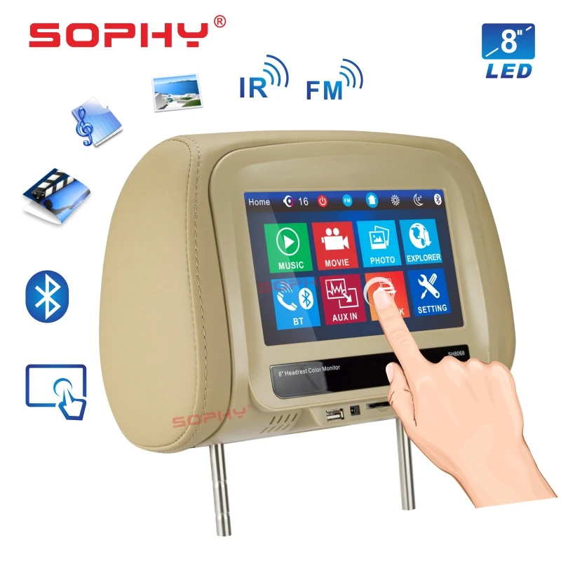 Special Offer New! 8 inches Car Headrest Monitor MP4 MP5 Video Player Pillow Monitor with IR FM Touch Screen Phone Charging SH8068 P5 Discount 21% Today!