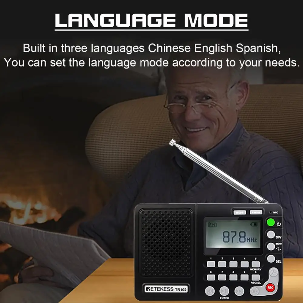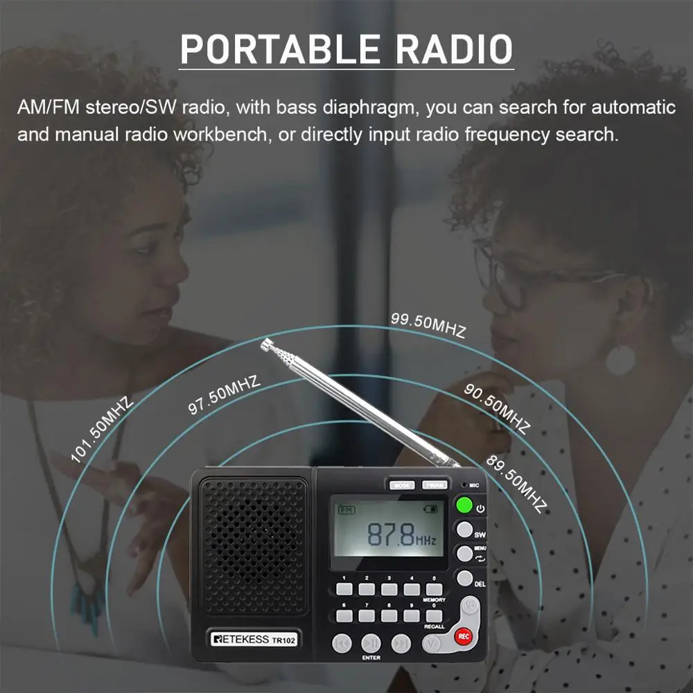 Special Offer Retekess TR102 Portable Radio FM AM SW World Band Receiver MP3 Player REC Recorder With Sleep Timer Black FM Radio Recorder Discount 24% Today!