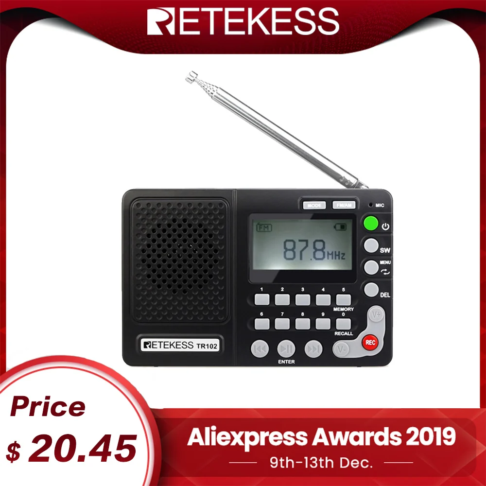 Best . (24% Off) Buy Retekess TR102 Portable Radio FM AM SW World Band Receiver MP3 Player REC Recorder With Sleep Timer Black FM Radio Recorder Price Online.