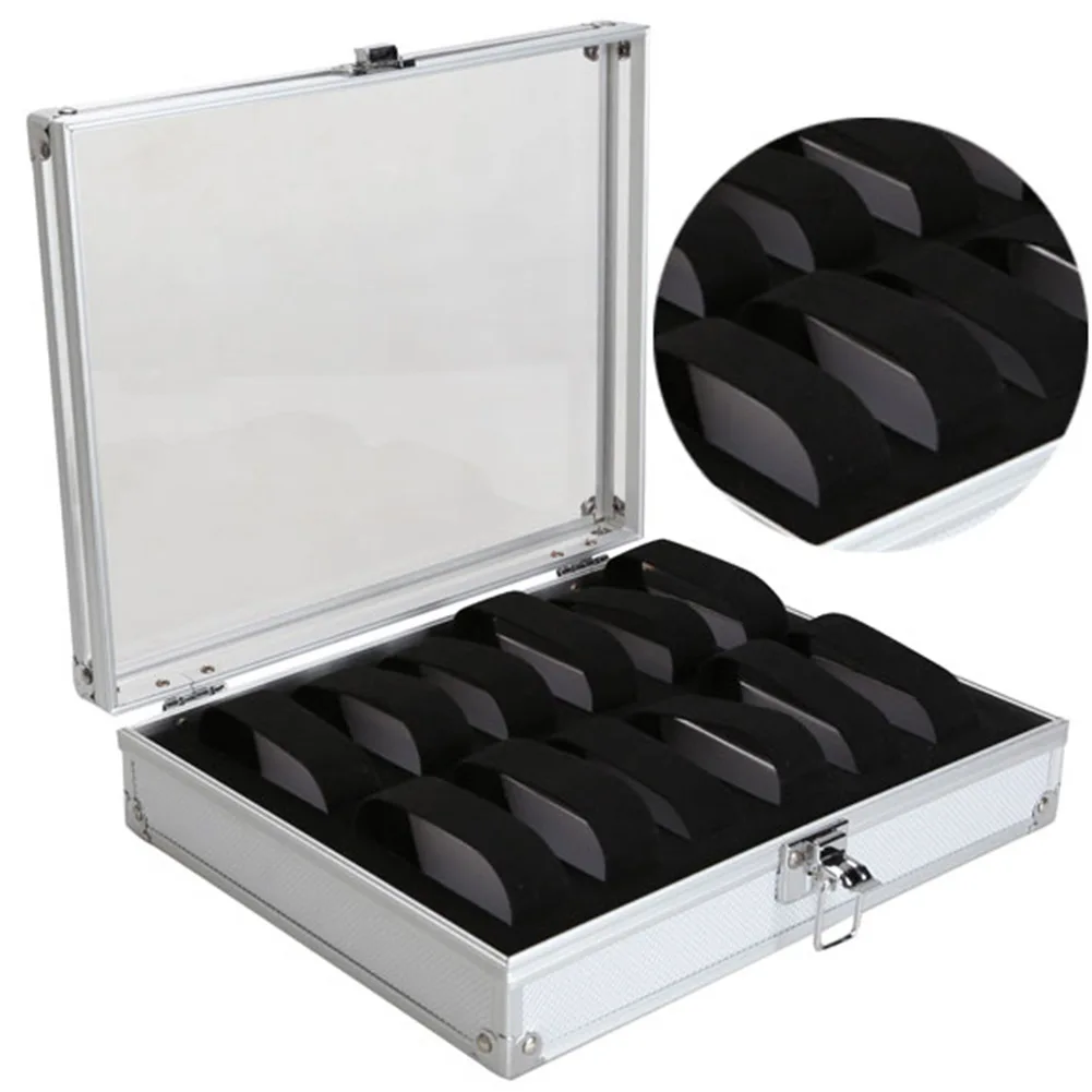 Special Offer Delicate aluminum Alloy Watch Holder Boxes Soft Suede 12 Grid Slots Display Cases Square Storage Box Watch Accessories PT Discount 27% Today!