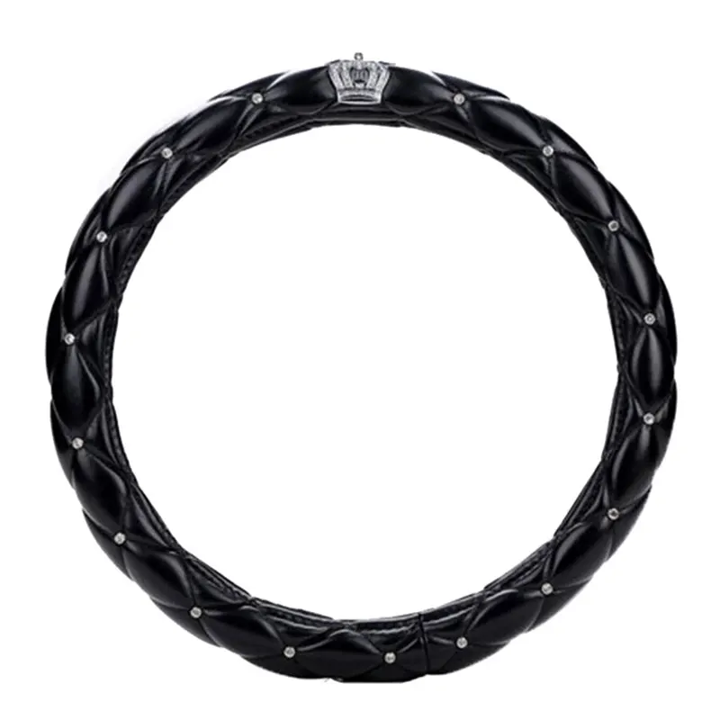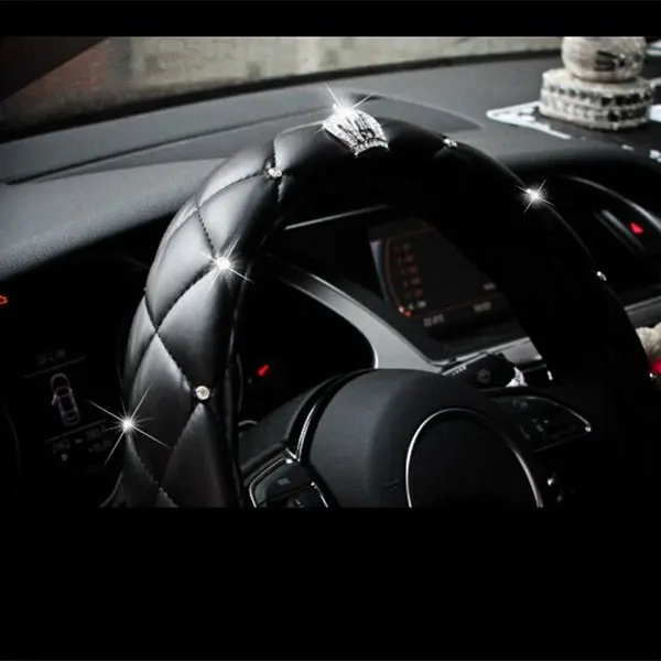 Special Offer 38cm Luxury Crystal Crown Studded Rhinestone PU Leather Car Steering Wheel Cover Diamond Steering Cover Interior Car Accessories Discount 41% Today!
