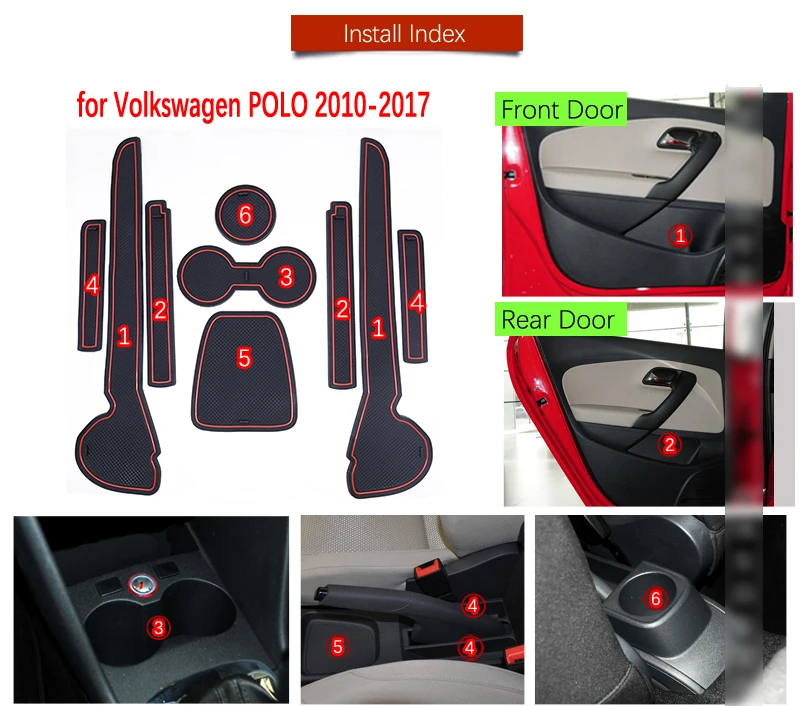 Special Offer Anti Slip Rubber Mats Gate Slot Cup Mat for VW POLO 6R 6C 2010 2011 2012 2013 2014 2015 2016 2017 MK5 Volkswagen GTI Accessories Discount 50% Today!