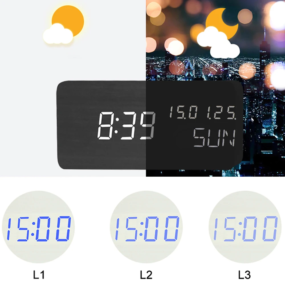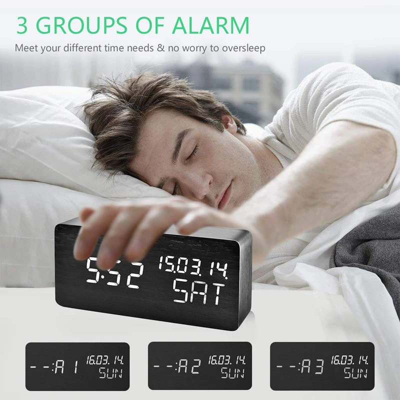 Special Offer JINSUN Table Clock Sound Control Desktop Luminous Alarm Clock for Children Wooden Calendar Modern Adjustable Brightness Discount 65% Today!
