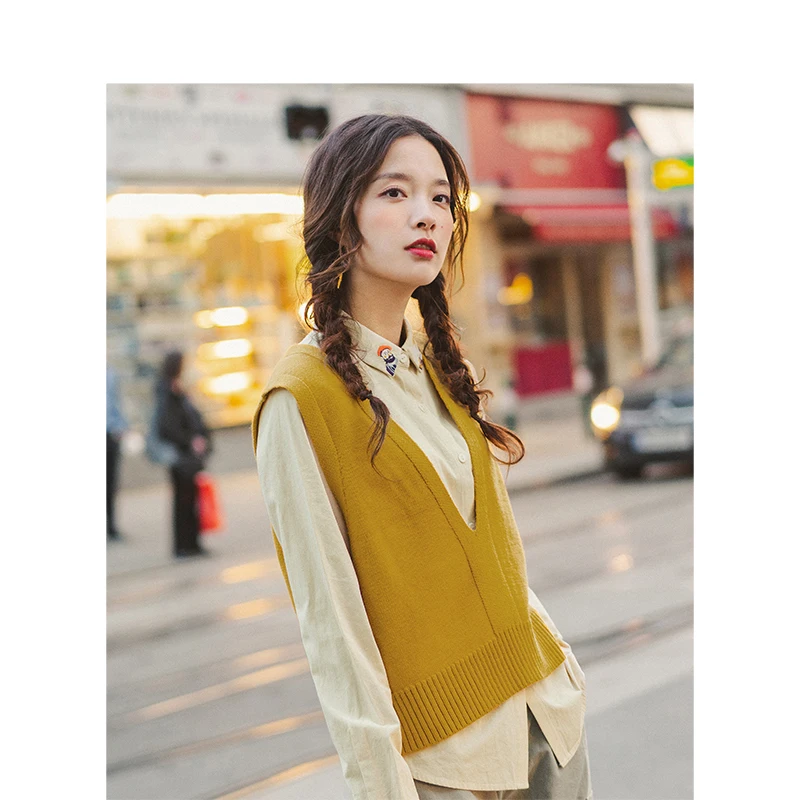 Special Offer INMAN 2019 Autumn New Arrival Solid Deep V neck Sleeveless All Matched Women Sweater Short Snit Vest Discount 70% Today!