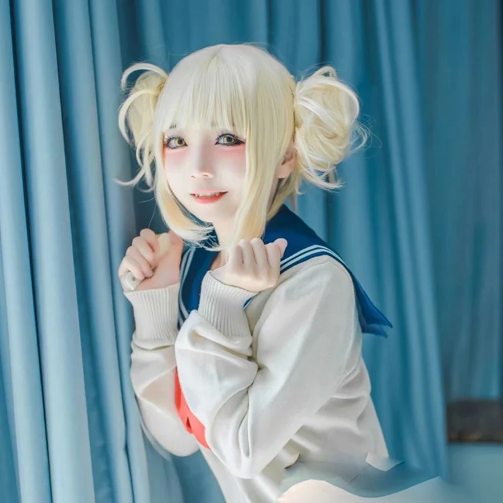 Special Offer Anime My Boku no Hero Academia Akademia Himiko Toga Short Light Blonde Ponytails Heat Resistant Cosplay Costume Wig+Cap Discount 17% Today!