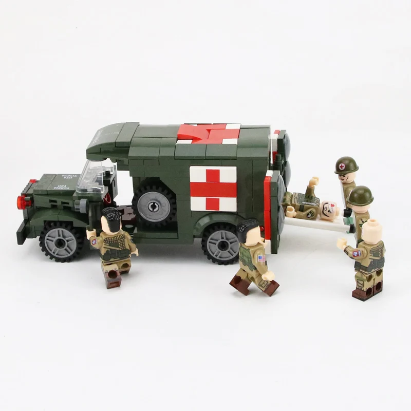 Special Offer WW2 USA Military Army Ambulance Building Blocks US Army rescue Soldiers Figures Weapons Accessories Building Blocks Bricks Toys Discount 20% Today!