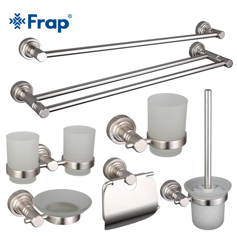 Special Offer Frap Modern Aluminum Alloy Bathroom Set Chrome Toothbrush Holder And Towel Rack Clothes hook 8 Pieces Bathroom Accessories F37T8 Discount 49% Today!