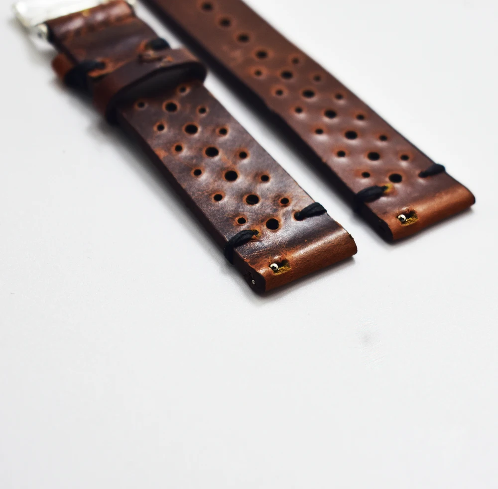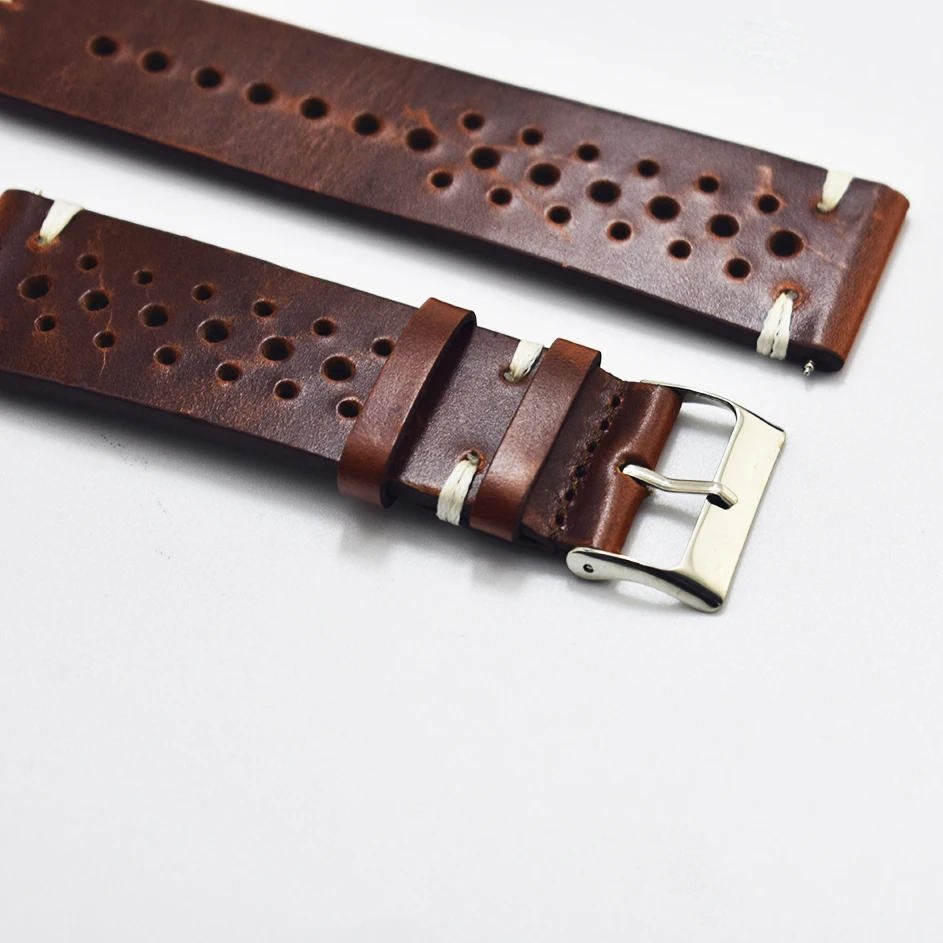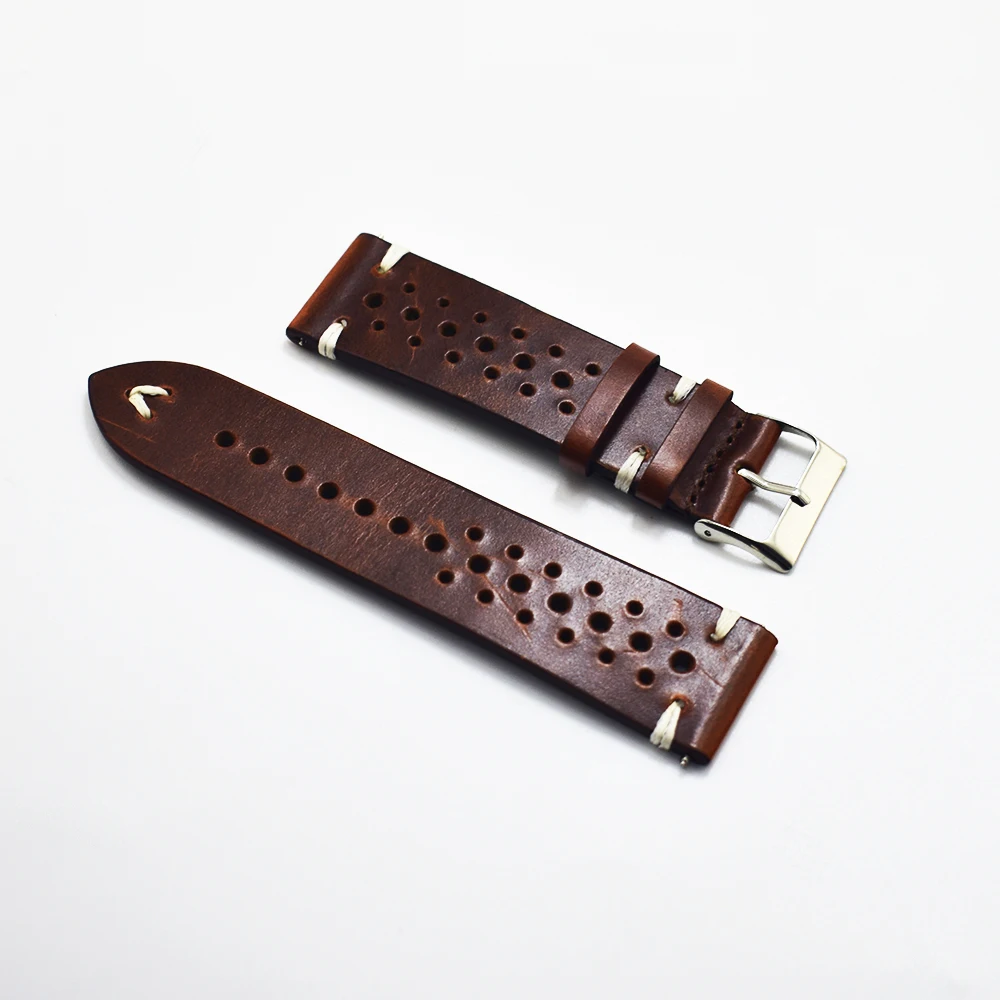 Best . (50% Off) Buy Handmade Vintage Leather Strap Watch Band Watch Accessories Bracelet 18mm20mm 22mm dark Red white black line Watchband Cheap Online.