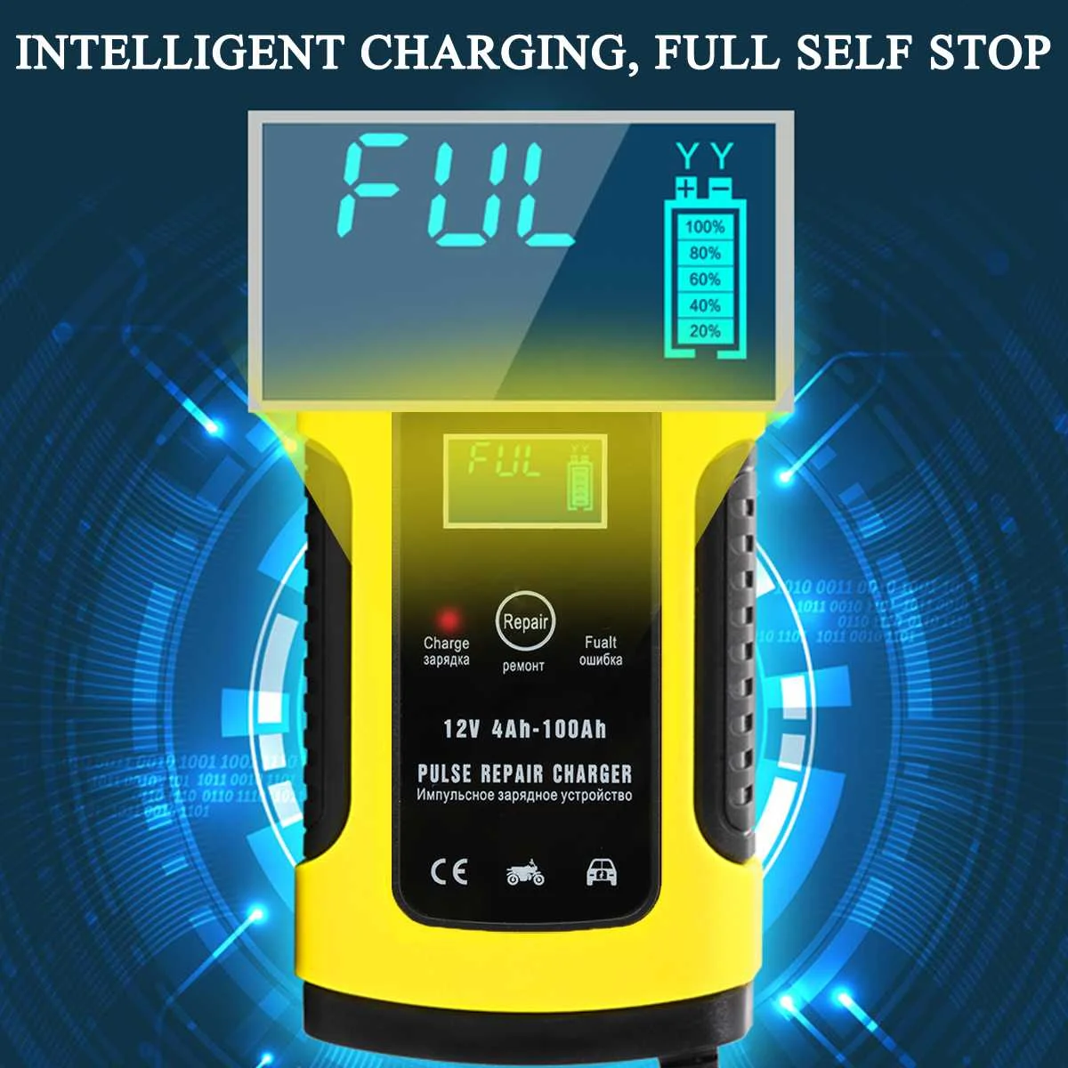 Special Offer For Truck Car Motorcycle 12V 5A Automatic Intelligent Pulse Repair With LCD Lead AGM GEL WET Lead Acid Battery Charger 100 240V Discount 10% Today!